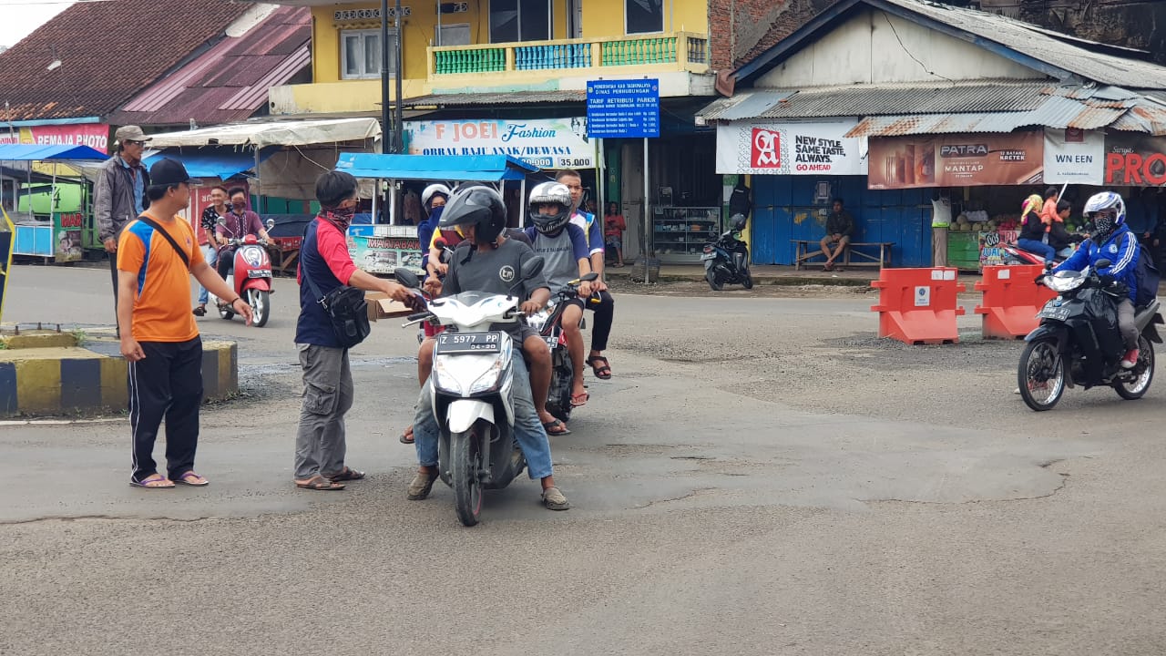 Kab.Tasik (kilangbara.com)-Komunitas penikmat kopi dan Rumah Kopi Nuy Chesee Tea.Membagikan sebanyak 1.500 masker gratis kepada sejumlah pengendara di tiga titik.Diantaranya Simpang, Sindangreret dan Rancabakung, Minggu (29/03/2020).