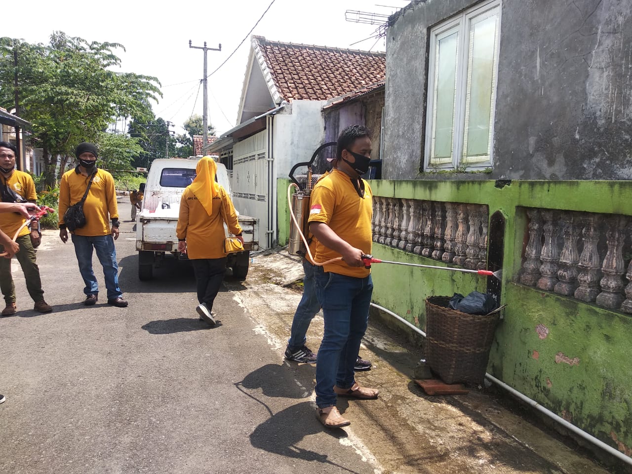 Kota.Tasik (kilangbara.com)-Sebagai bentuk peduli dalam pencegahan dan penularan Covid-19.DPC MKGR Kota Tasikmalaya mengadakan baksos, berupa penyemprotan disinfektan di Kelurahan Tamanjaya, Kecamatan Tamansari, Kota Tasikmalaya, Minggu (19/04/2020).