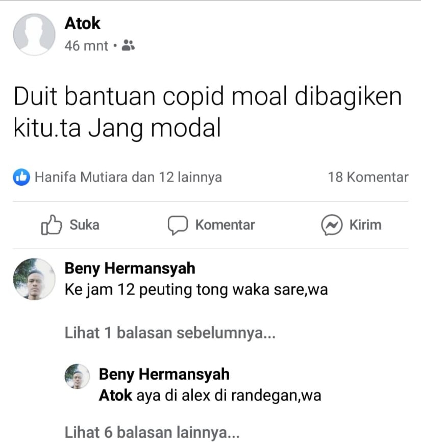 Dalam postingan itu, Atok menulis status di FB dengan menuding bantuan, bagi warga yang terdampak Covid-19 itu.Tidak dibagikan kepada masyarakat.Sehingga menuai resistensi Pemdes Salawana.