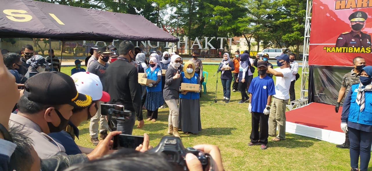 Dalam kesempatan itu, Kapolda Jabar juga memberikan bantuan berupa paket sembako sebanyak 300 paket kepada warga terdampak COvid-19.dalam rangka secara simbolis yang diserahkan langsung oleh Gubernur Jawa Barat dan lainnya.