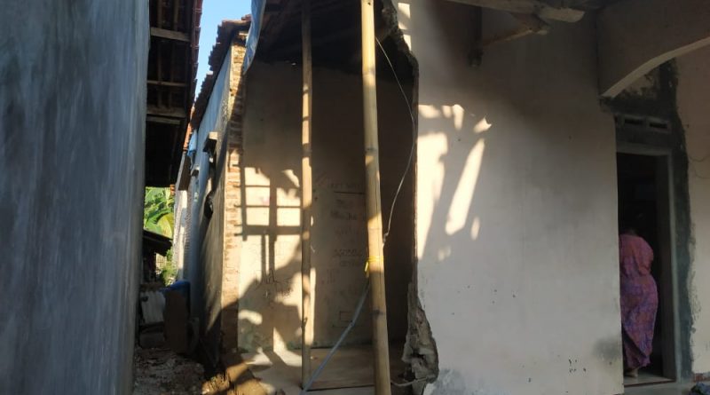 Ciamis (kilangbara.com)-Dinding rumah milik Sumiati, warga Dusun Cangkring , RT 05, RW 01 Desa Ratawangi, Kecamatan Banjarsari, Kabupaten Ciamis, ambruk.Sekitar pukul 10.30 WIB, Sabtu (18/07/2020).Kondisi dinding tersebut, memang sudah retak, akibat dulu terkena dampak gempa Banten pada 2017.