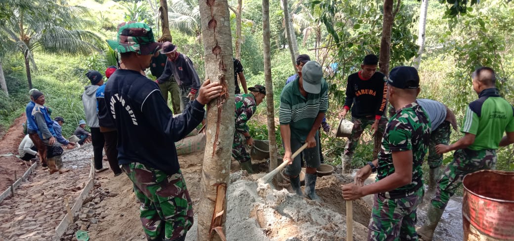 Kab.Sukabumi (kilangbara.com)-Setelah dikebut terus menerus, pengerjaan sasaran fisik TNI Manunggal Membangun Desa (TMMD) Ke-108 tahun 2020 di Desa Sukaluyu, Kecamatan Kalibunder, Kabupaten Sukabumi.Kini telah memasuki sekitar 99 persen pengerjaan.