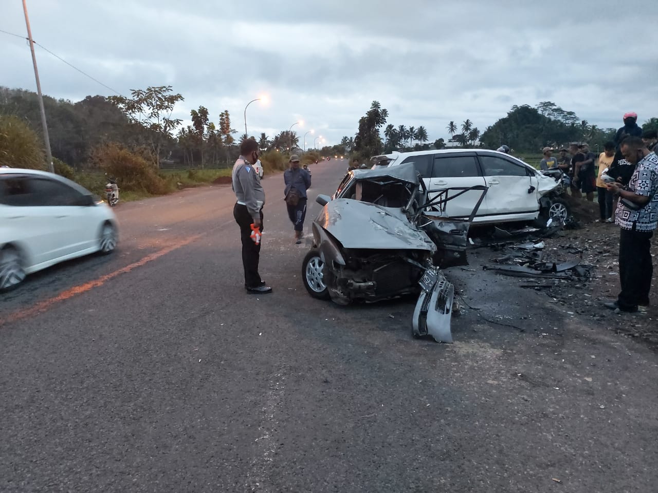 Ketika, melewati jalan menikung, sedan tersebut diduga mengalami pecah ban sebelah kiri depan, tak ayal oleng ke arah kanan.Saat itu, dari arah berlawanan datang minibus Xenia yang dikemudikan oleh Syawal.Dengan membawa 1 orang penumpang M Kenal Alib.Sehingga terjadilah tabrakan itu, hingga sedan tersebut, terguling dan ringsek.Bahkan, 4 penumpang sedan itu terjepit dalam mobilnya yang posisinya sudah terbalik.