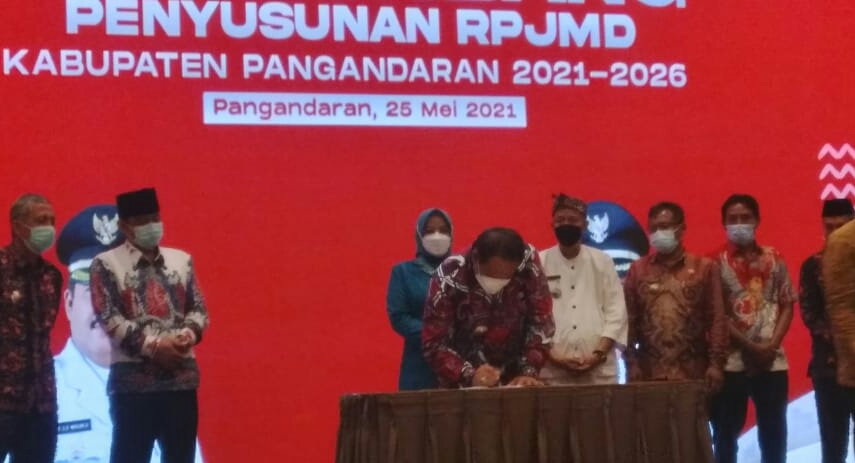 “RPJMD Kabupaten Pangandaran tahun 2021-2026 merupakan perumusan visi misi, pembangunan yang menunjukan cita-cita bersama masyarakat kabupaten Pangandaran, para stakeholder pembangunan daerah yang merepleksikan kekuatan dan potensi khas daerah sekaligus menjawab permasalahan dan isu-isu strategis Kabupaten Pangandaran,”terangnya.
