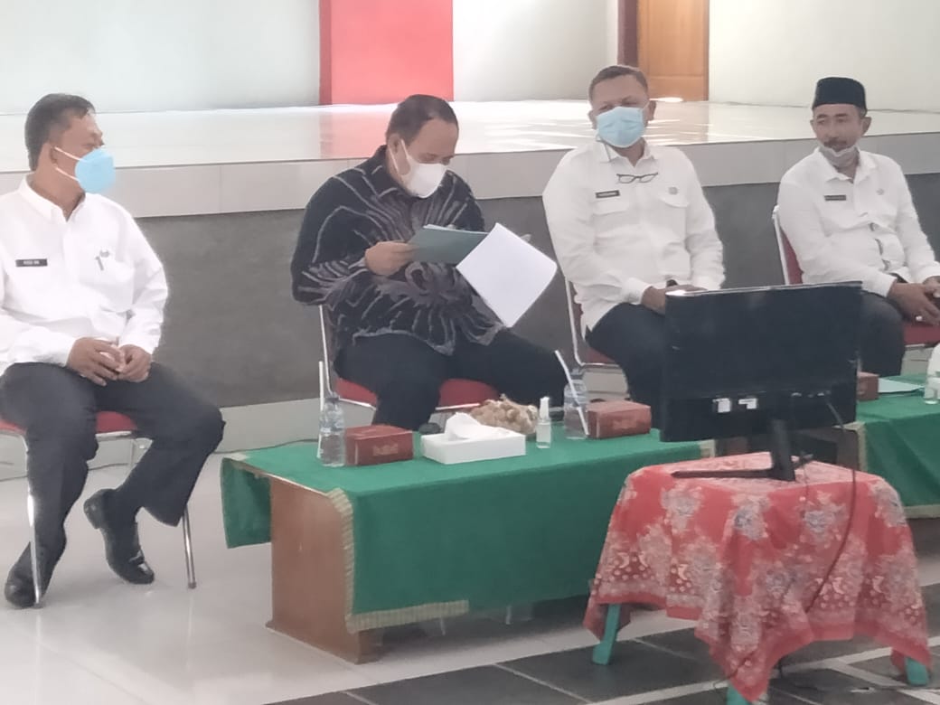 Pangandaran (kilangbara.com)- Kegiatan sosialisasi ketentuan dan penegakan prokes, saat pandemi Covid-19. Terus, dilakukan oleh Pemkab Pangandaran sampai ke pelosok desa. Seperti yang dilaksanakan di Aula Desa Bunisari, Kecamatan Cigugur, Kabupaten Pangandaran, Rabu, (16/06/202). Kegiatan itu, diikuti oleh semua Camat, Kepala Desa, BPD, MUI, Babinsa dan Babinkamtibmas. Diwilayah Kecamatan Cigugur dan Kecamatan Langkaplancar.
