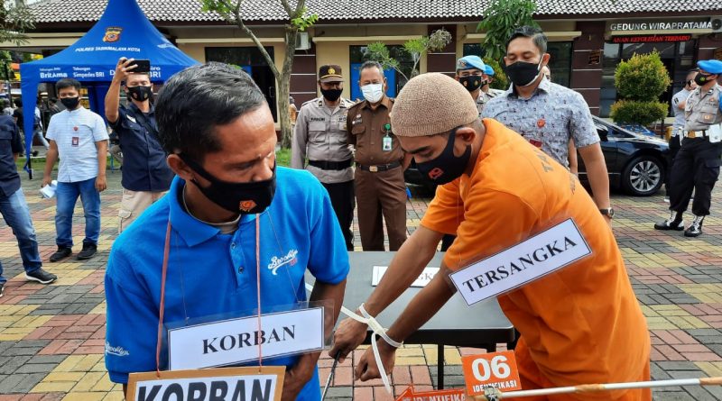 Kota.Tasik (kilangbara.com)-Rian alias Tatang (31) tukang rongsok, ditusuk sebanyak 4 kali oleh pelaku, AP (27) hingga bersimbah darah, lalu tewas di Pasar HPKP, Rabu 23 Juni 2021 lalu. Hal tersebut terungkap dari hasil rekonstruksi, dihalaman Mapolres Tasikmalaya Kota, Jumat (09/07/2021). Dalam rekonstruksi itu, diperagakan langsung oleh AP. Dengan 16 adegan, korban ditusuk 4 kali dibagian punggung, perut dan paha.