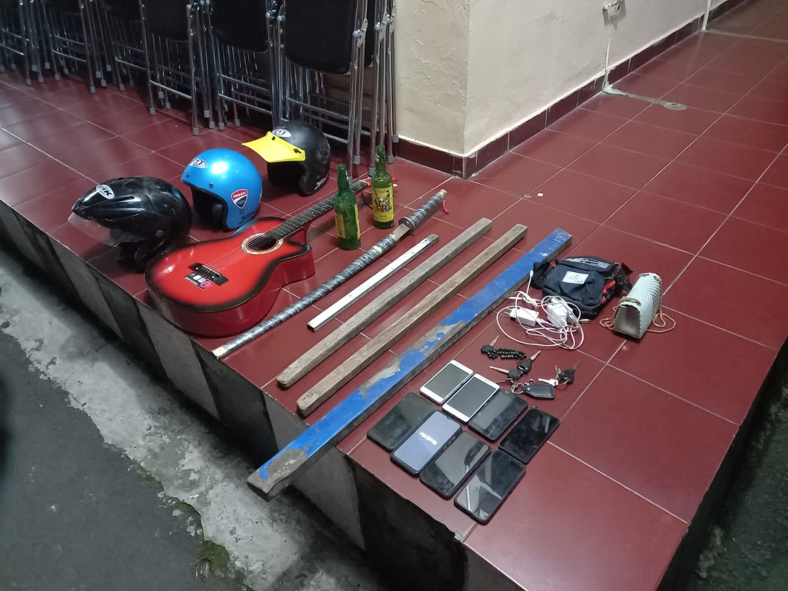 “Kami amankan 11 ABG dalam keadaan mabuk miras, beserta 5 unit sepeda motor, 1 samurai, 2 balok besi, 2 balok kayu sudah dipasang paku. Selanjutnya para pelaku dan barang bukti. Kini, diserahkan ke SatReskrim Polres Tasikmalaya Kota, guna pemeriksaan lebih lanjut,”ungkap Katim 1 Maung Galunggung, Ipda Ipan Faisal, SH.
