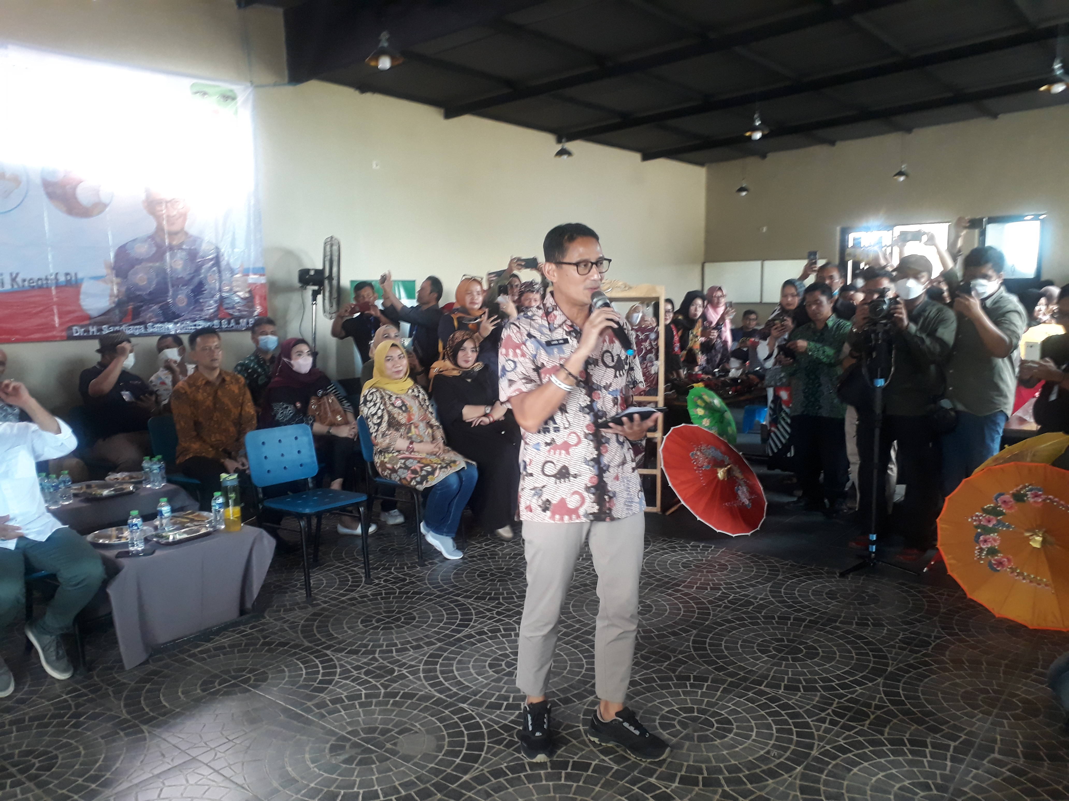 Menteri Pariwisata dan Ekonomi Kreatif, Sandiaga Uno. Di Rumah Makan Rasa Desa Kota Tasikmalaya. Diwarnai, dengan curhatan seorang emak-emak bernama, Iin salah satu pedagang kopi kemasan asal Nagarawangi. Mengaku, selama ini bingung dalam pemasaran produknya.