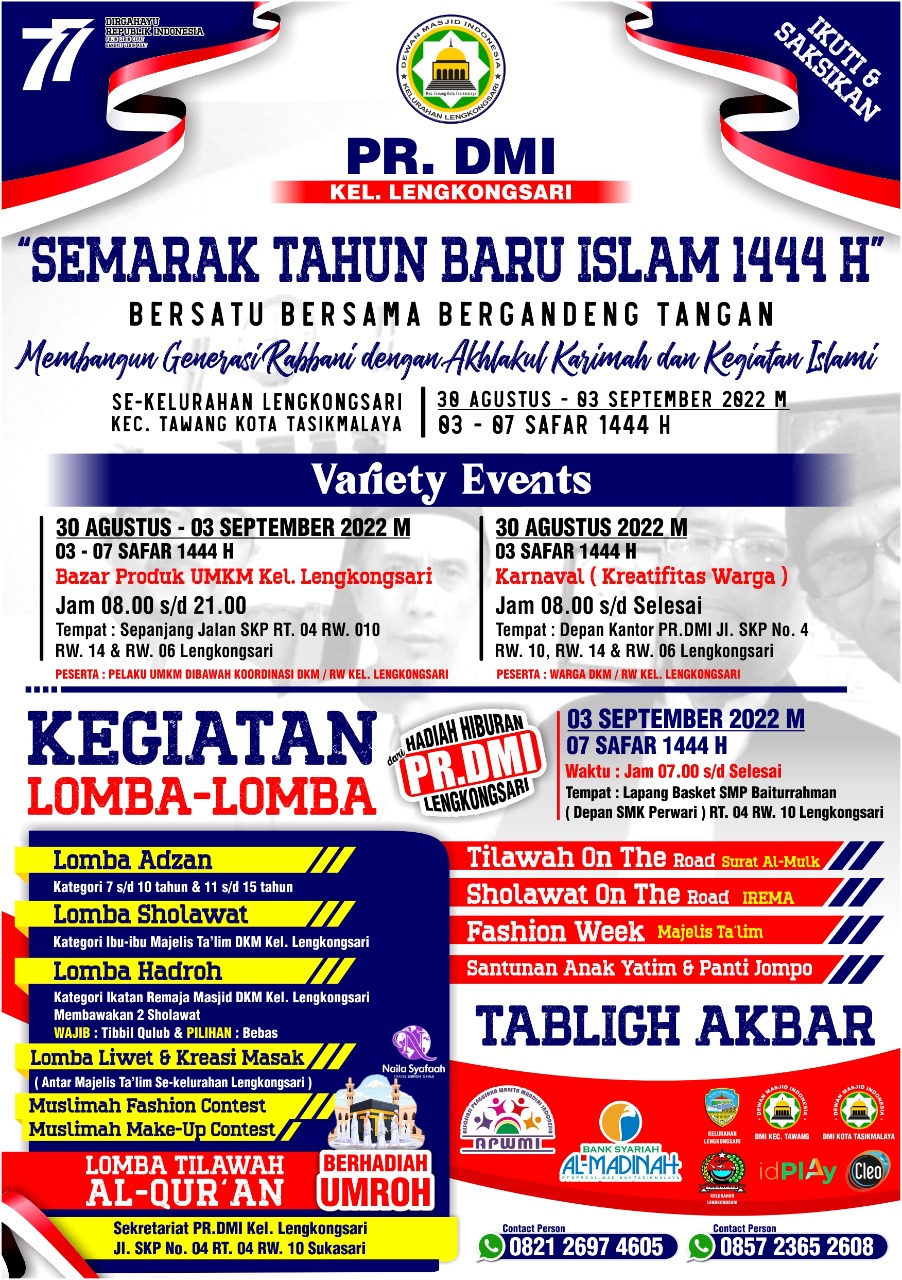 Dalam semarakan tahun baru islam 1444 hijriah itu juga panitia. Mengelar variety event berupa, bazar produk UMKM se-Kelurahan Lengkongsari. Pada, 30 Agustus-03 September 2022. Disepanjang Jalan SKP RT 04 RW 10 mulai pukul 08.00-21.00 WIB. Pesertanya, pelaku UMKM dibawah koordinasi DKM/RW Kelurahan Lengkongsari.