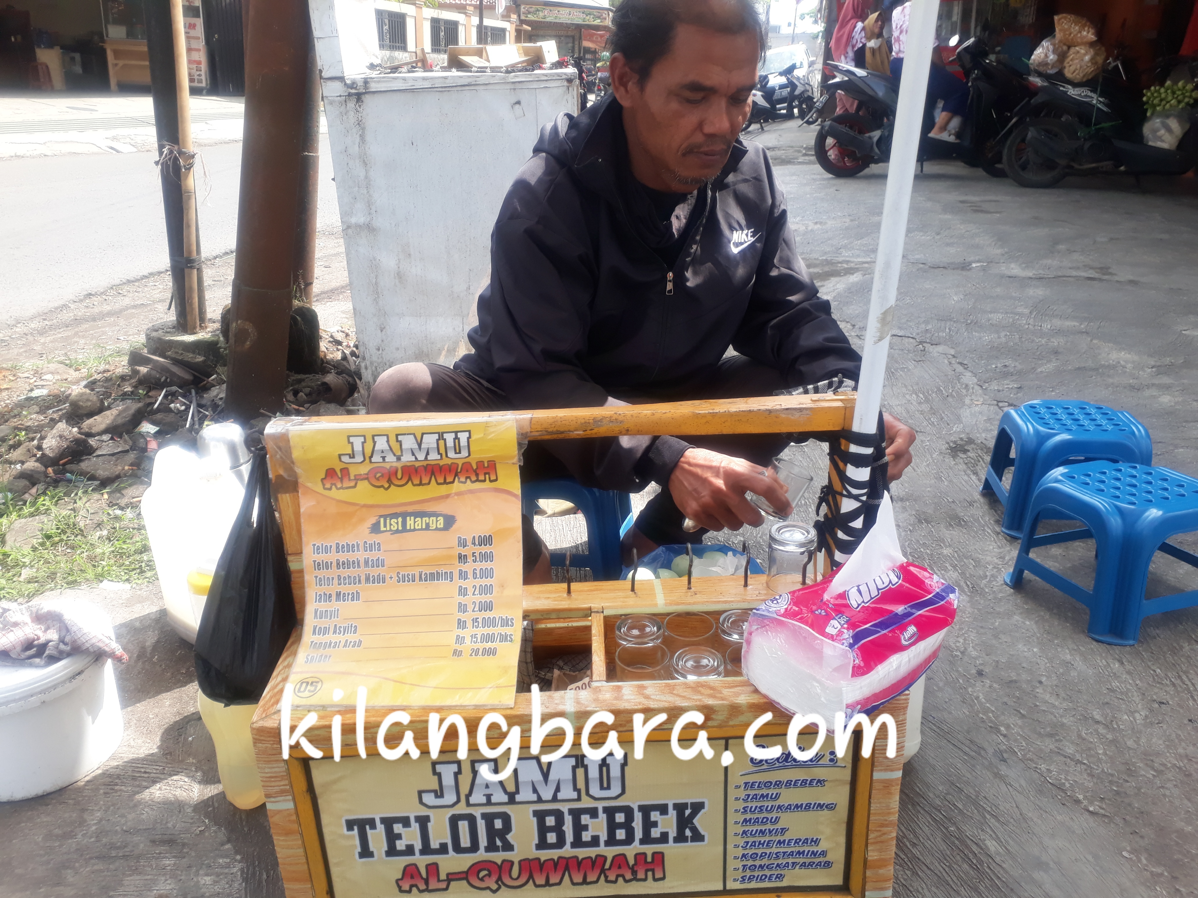 “Jualannya sama seperti saya, dipinggir jalan kaya gini. Tapi, alhamdulillah dalam 1 hari, bisa sebanyak 40 orang pembelinya. Saya, jualan disini sudah selama 2 tahun. Adapun, dalam 1 hari bawa 50 butir telur bebek, 1,5 liter madu,”ungkapnya.