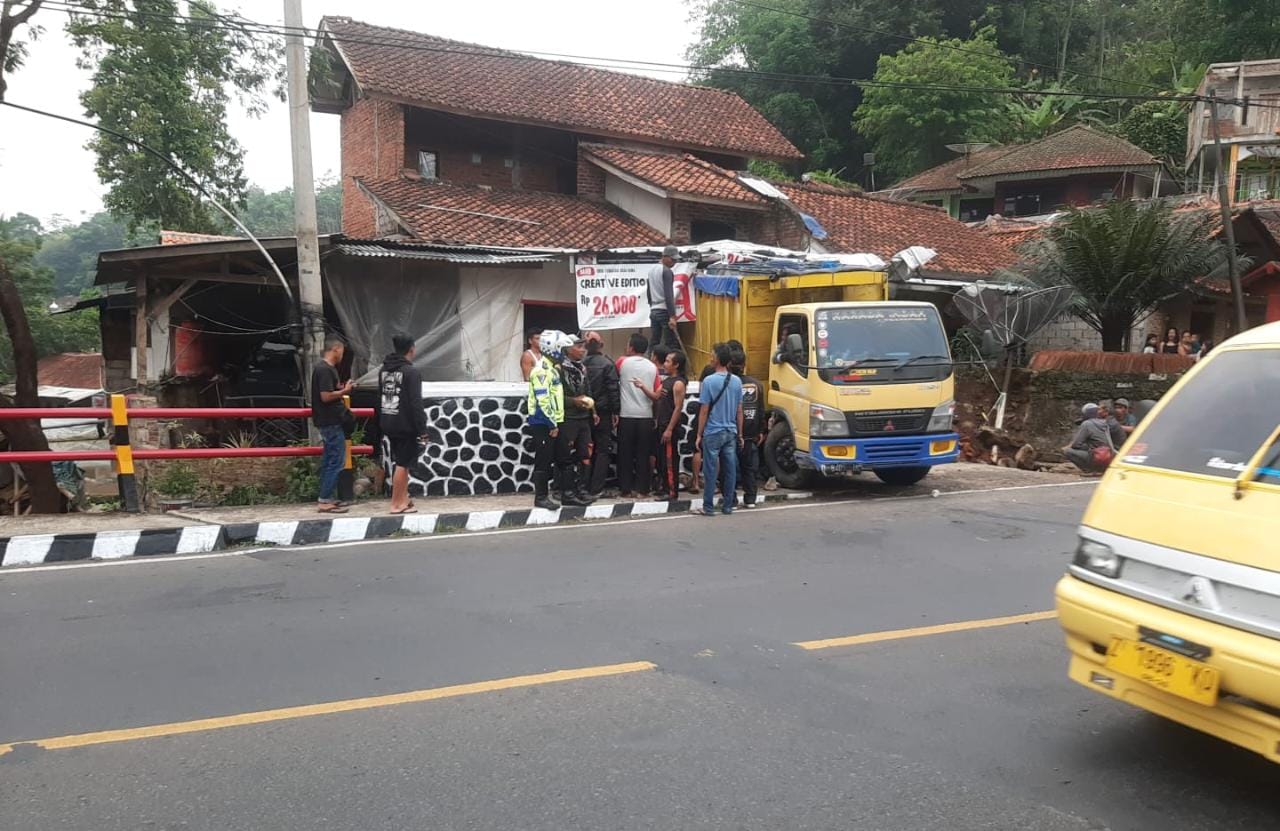 “Saat menanjak di TKP, truk Hino mengalami rem blong dan mundur menabrak truk Colt Diesel. Akibatnya, dua truk itu terseret sampai menghantam sebuah rumah milik Ganda warga setempat,” jelasnya.