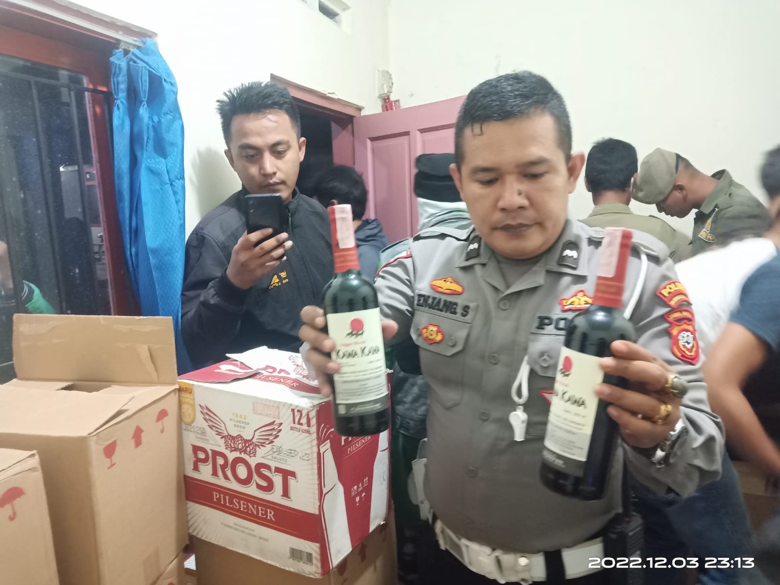Kota.Tasik (kilangbara.com)-Polsek Indihiang Polres Tasikmalaya Kota dan Satpol PP. Berhasil, mengamankan sebanyak 973 botol miras dari sebuah kamar kos. Di Kelurahan Sukamaju Kidul, Kecamatan Indihiang Kota Tasikmalaya, Sabtu (03/12/2022) malam.