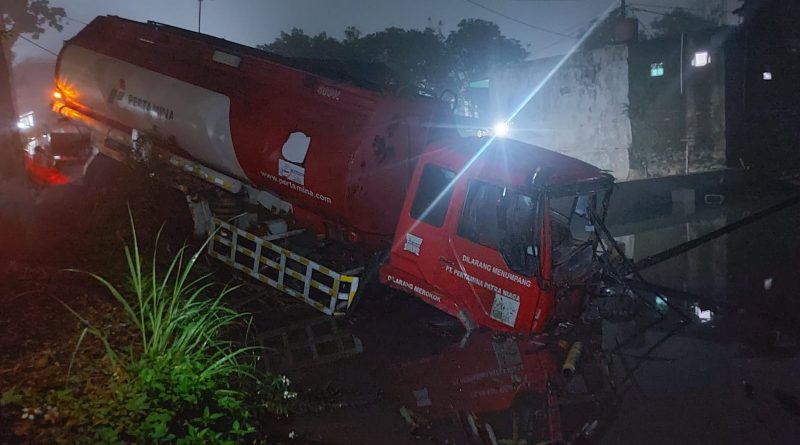 Kota.Tasik (kilangbara.com)-Truk tangki pertamina menyeruduk pohon, warung dan tiang telepon. Hingga, masuk ke sawah di Jalan Letjen Mashudi, Kelurahan Setiaratu, Kecamatan Cibeureum, Kota Tasikmalaya, Jumat (06/01/20, 23) dinihari.