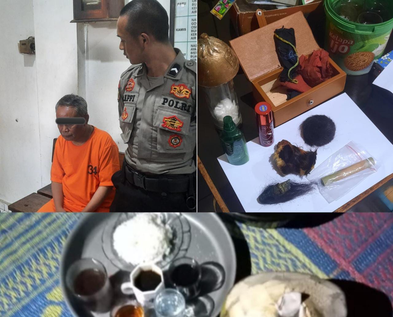 Adapun pelaku kata Agung. Dalam melakukan aksinya itu dengan menggunakan sesajen, jenglot, rantai babi, berbagai parfum. Sebagai modus, digunakan untuk mengelabui korbannya. Kini, sejumlah barang itu telah dijadikan barang bukti dan sudah diamankan.