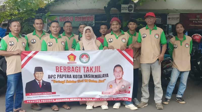 Kota.Tasik (kilangbara.com)-Sebagai salah satu bentuk peduli dibulan suci ramadhan. DPC Pedagang Pejuang Indonesia Raya (Papera) Kota Tasikmalaya, turun langsung dengan melakukan aksi sosial. Berupa, membagikan sejumlah takjil gratis kepada masyarakat. Sehingga, kegiatan itu mendapat animo yang antusias dari warga.