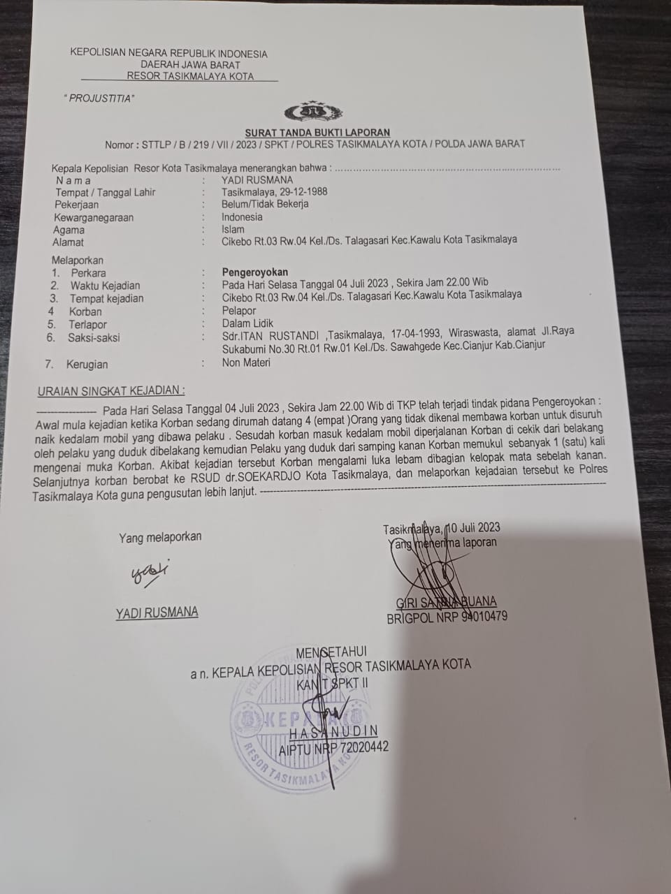 “Kami selaku kuasa hukum bersama korban telah mendatangi Polres Tasikmalaya Kota. Dengan, melaporkan para pelaku penculikan, pengeroyokan dan penganiayaan oleh beberapa orang tidak dikenal itu,”bebernya, Senin (10/07/2023).