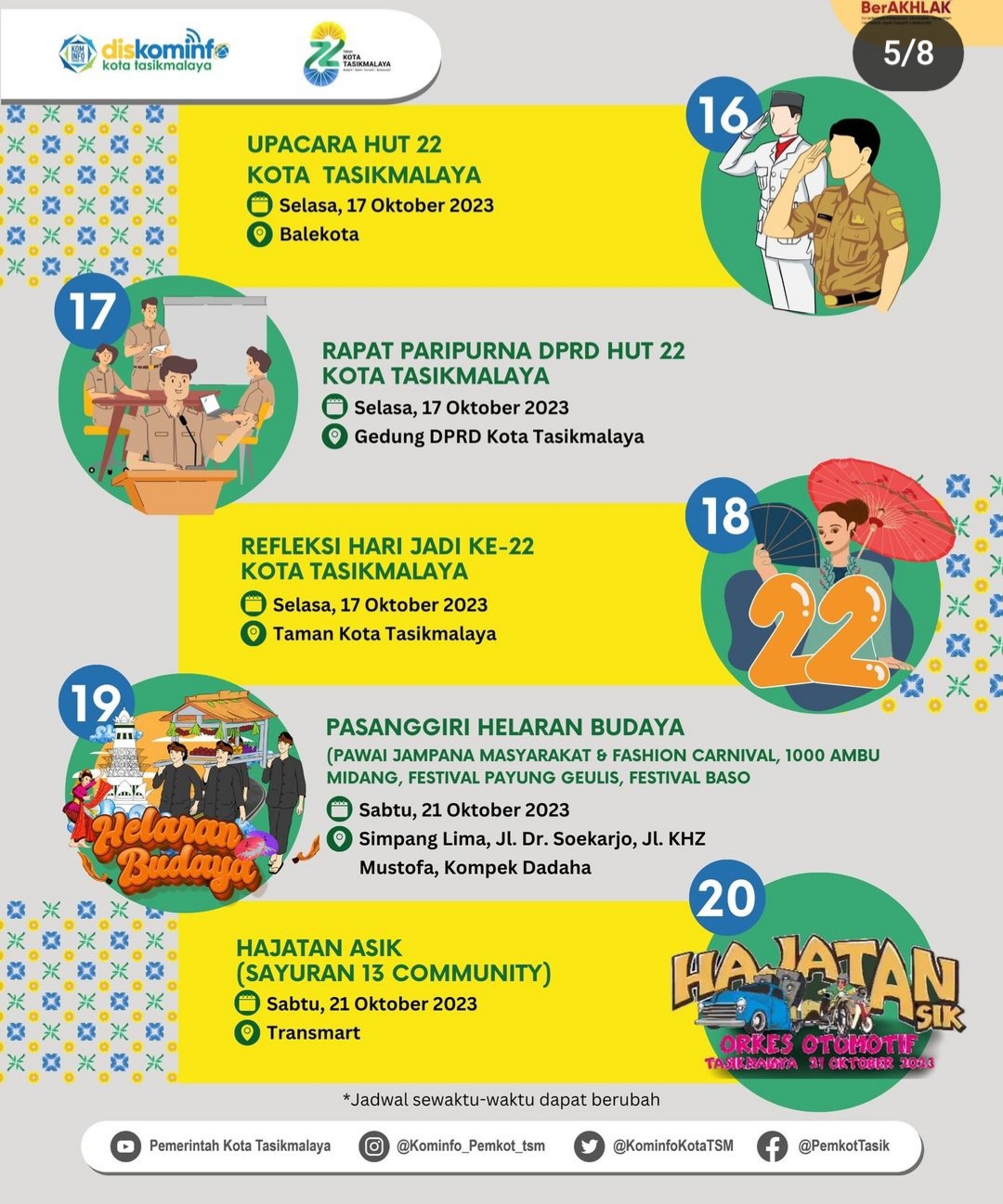Kalian mau tahu apa saja kegiatannya itu. Neh, rundown rangkaian HUT Kota Tasikmalaya ke-22 :