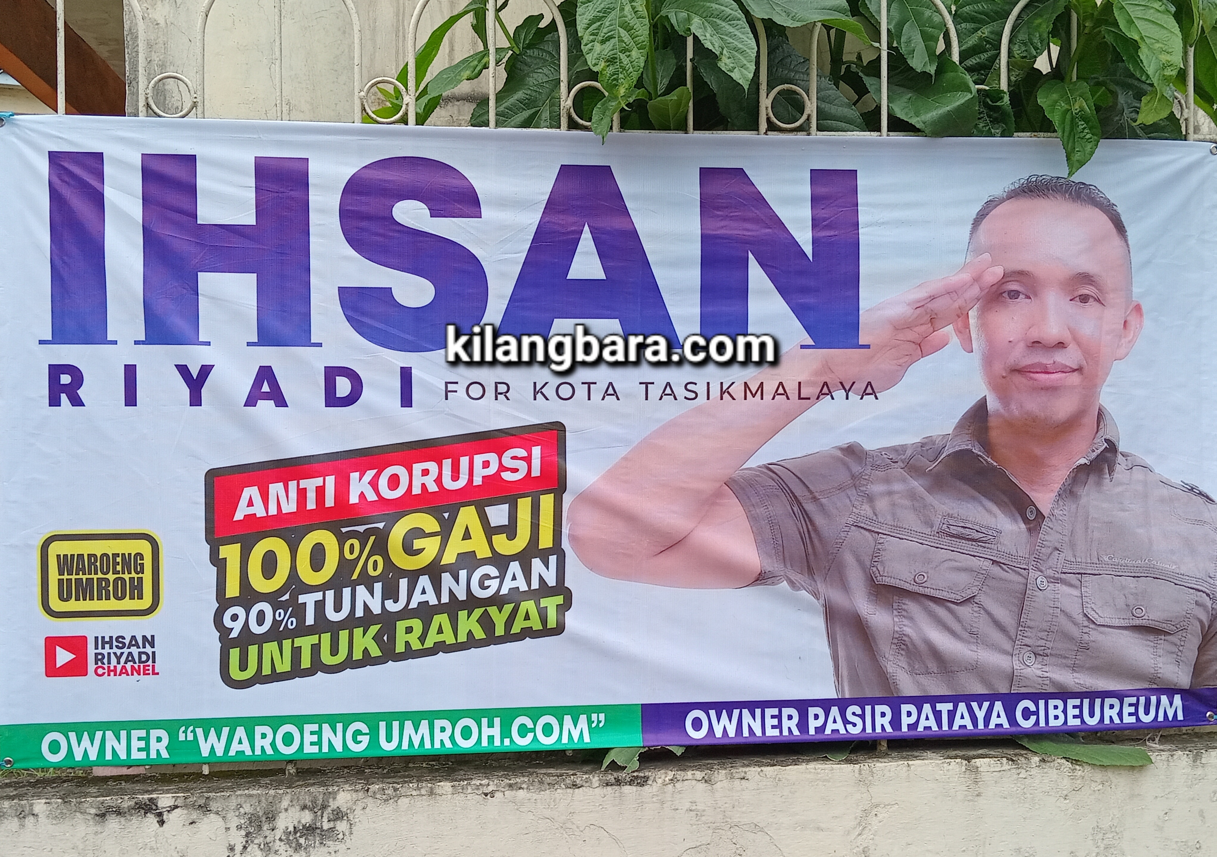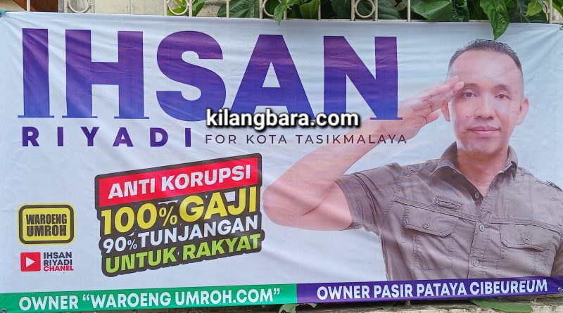 Bahkan, dalam spanduk dan bannernya itu tertulis sangat jelas “Ihsan Riyadi For Kota Tasikmalaya”. Serta, tertera ada tagline anti korupsi dan 100 persen gaji dan 90 persen tunjangannya untuk rakyat. Artinya, jika bisa terpilih jadi Walikota Tasikmalaya. Seratus persen, gajinya dan sembilan puluh persen tunjangannya akan diberikan kepada masyarakat.