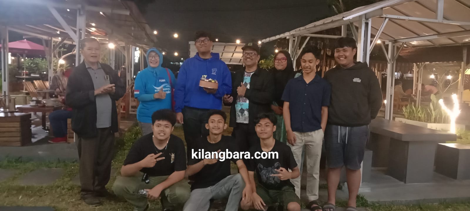 “Selamat ulang tahun bagi De Alif ke 17 tahun, semoga panjang umur, banyak rejeki dan sehat selalu. Hayu, kita lanjutkan lagi bernyanyi dan siapa yang ingin nyanyi, silahkan naik ke sini,”ajak vokalis Bring Plus, Levi. Diatas Stage Kedai 77, Jumat (02/08/2024).