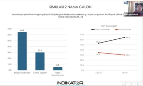 Pilkada 2024 Majalengka, Survei Indikator Eman-Dena 64,6 Persen, Karna-Koko 30,1 Persen