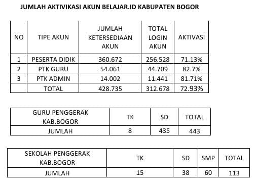 LAPORAN PROGRES SULINGJAR DINAS PENDIDIKAN KABUPATEN BOGOR.