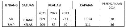 Program Tuntas Rehabilitasi Ruang Kelas SD dan SMP. Sebagai, penunjang menunjang kualitas pembelajaran peserta didik dalam menempuh pelayanan kegiatan belajar mengajar. Pemerintah Kabupaten Bogor melalui Dinas Pendidikan Kabupaten Bogor melakukan serangkaian pengembangan Rehabilitasi sarana fisik bagi jenjang Sekolah Dasar (SD) dan Sekolah Menengah Pertama (SMP) sebagai berikut :