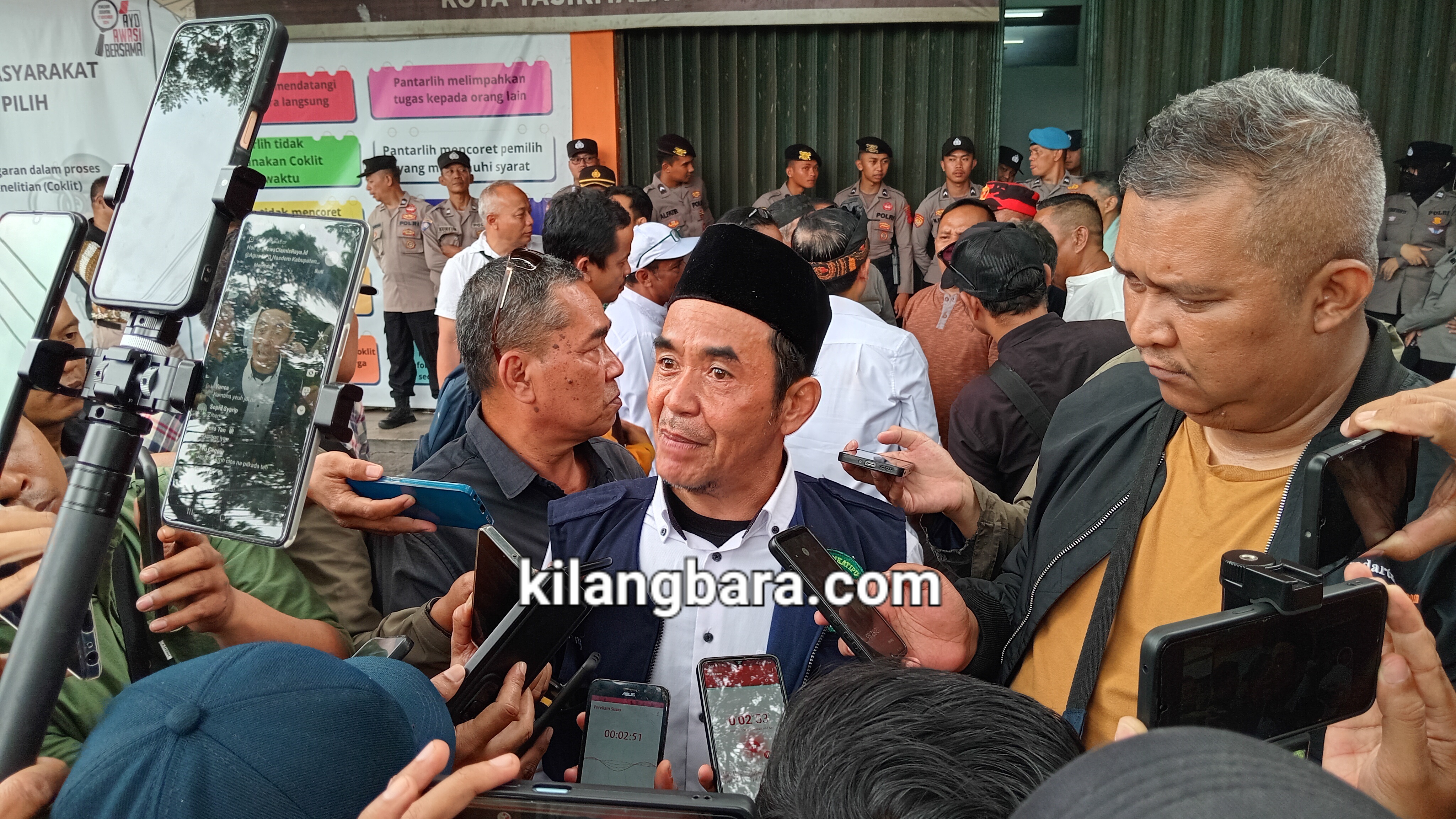 “Kami datang ke sini untuk menyuarakan sebuah keadilan. Karena, diduga telah terjadi pelanggar konstitusi oleh salah satu paslon. Sehingga, kami menolak hasil Pilkada 2024 Kota Tasikmalaya,”ujar Ketua Umum Alim Katipu, Dani kepada para awak media.