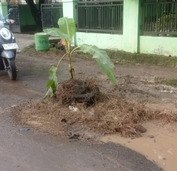 Majalengka (kilangbara.com)-Kesal sudah 3 tahun jalan rusak parah di Girimukti-Leuwikidang-Tarikolit tidak ada perbaikan. Akhirnya, warga Desa Leuwikidang, Kecamatan Kasokandel, Kabupaten Majalengka. Tanam, pohon pisang untuk menutupi semua permukaan jalan rusak yang menghubungkan ke Kota Majalengka itu.