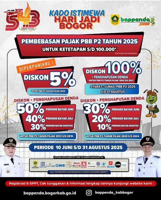 Publikasi Kinerja BAPPENDA Kab Bogor 2025, HJB ke-543 Kado Istimewa Pembebasan PBB P2