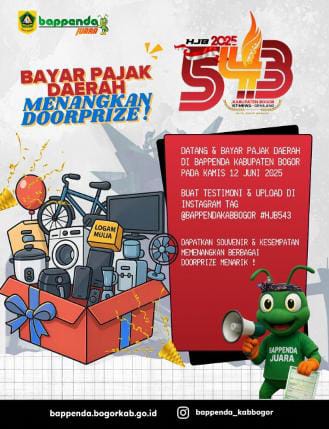 Kegiatan itu, dilaksanakan di Ruang Pelayanan Bappenda Kabupaten Bogor pada, Kamis 12 Juni 2025. Wajib Pajak yang datang secara langsung, dapat melakukan pembayaran pajak mendapatkan souvenir. Serta, berkesempatan memenangkan doorprize yang menarik.