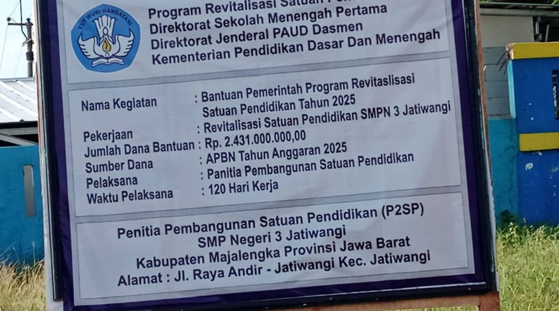 Proyek itu lanjut Iwan. Di Kabupaten Majalengka yang dapat bantuan program revitalisasi tahun 2025. Ada, sebanyak 6 SMPN dengan pelaksanaannya secara sewakelola.(Sam)