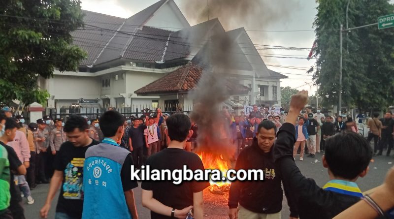 mengklaim sudah punya datanya. Setelah itu, PMII pun membakar ban bekas hingga asapnya mengepul didepan pintu gerbang gedung itu.