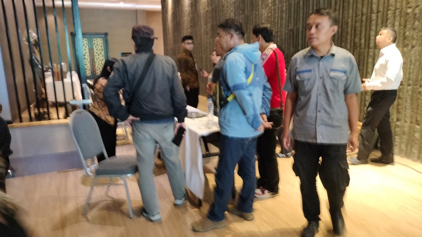 Kericuhan itu, berawal ketika salah satu wartawan dari media online ketik one.com, Endang. Sedang, bergegas naik tangga ke lantai 2 untuk meliput kegiatan itu. Namun, tiba-tiba saja ada suara panitia yang melarangnya dibawah. Sehingga, terpaksa turun kembali dan menemui panitia tersebut.