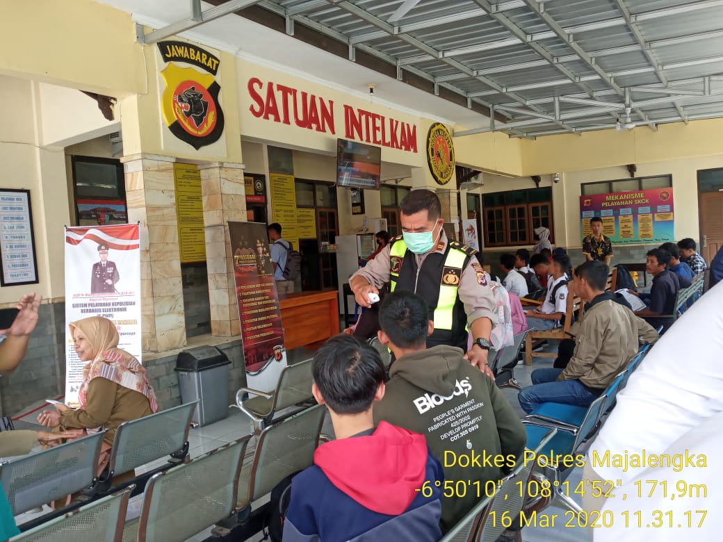 “Selain pemeriksaan suhu badan, pengunjung untuk pelayanan Polres Majalengka.Dipersilahkan untuk mencuci tangan menggunakan hand sanitizer yang telah disiapkan,”ujar Kapolres Majalengka AKBP Bismo Teguh Prakoso.