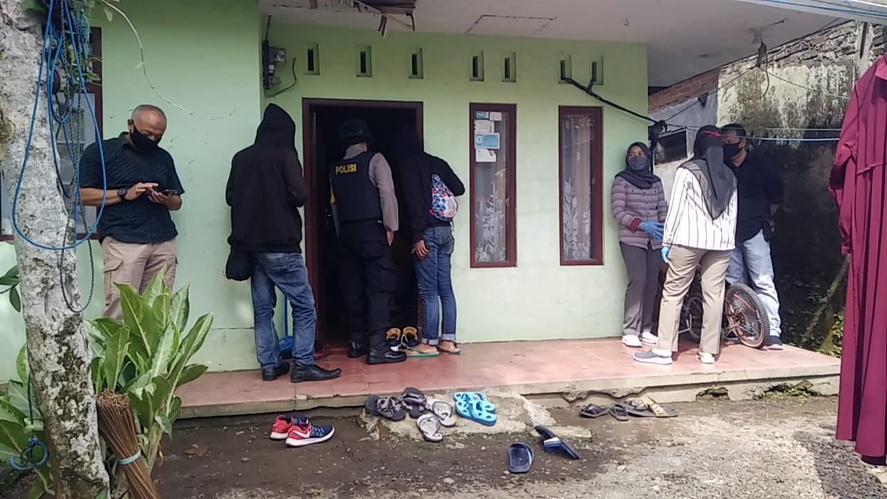 Kota.Tasik (kilangbara.com)-Saat Tim Detasemen Khusus (Densus) 88 Antiteror Mabes Polri, mengeledah rumah terduga teroris MR (45).Di Kampung Padasuka, Kelurahan Sukamaju Kaler, Kecamatan Indihiang, Kota Tasikmalaya, Rabu (13/05/2020).