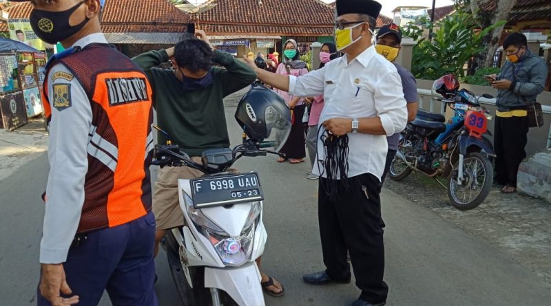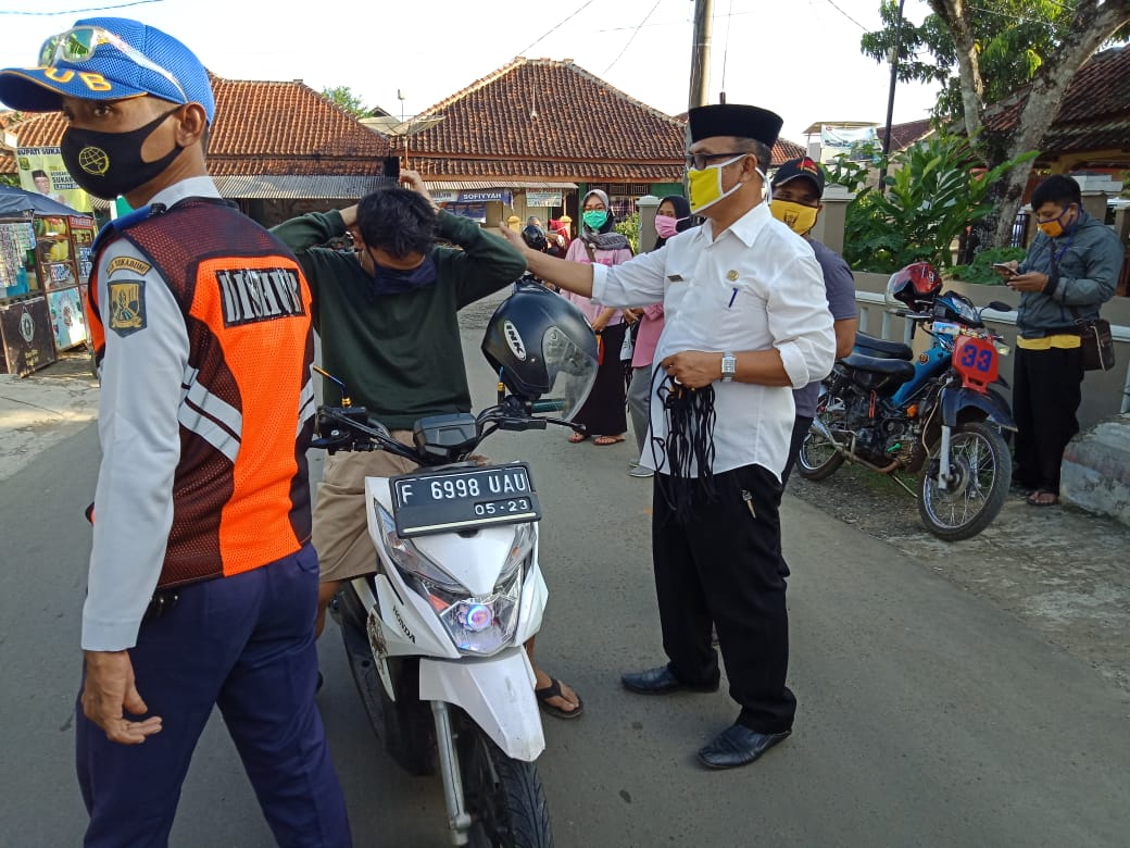 Sukatani, Kecamatan Surade, Kabupaten Sukabumi.Menggelar aksi untuk menyerukan wajib memakai masker bagi masyarakat.Dipertigaan jalan Cagak Desa Sukatani, Kamis (14/05/2020).