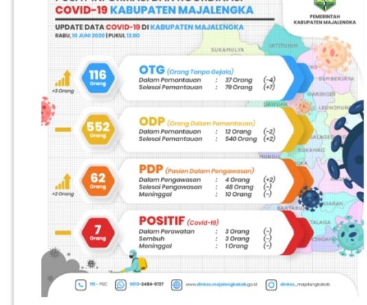 Majalengka (kilangbara.com)-Jelang berakhirnya Pembatasan Sosial Berskala Besar (PSBB) Proporsional pada 12 Juni 2020.Ternyata ada peningkatan kasus Orang Tanpa Gejala (OTG) dan Pasien Dalam Pengawasan (PDP) Covid-19 di Majalengka, Rabu (10/6/2020).Dengan dibandingkan dengan hari sebelumnya.