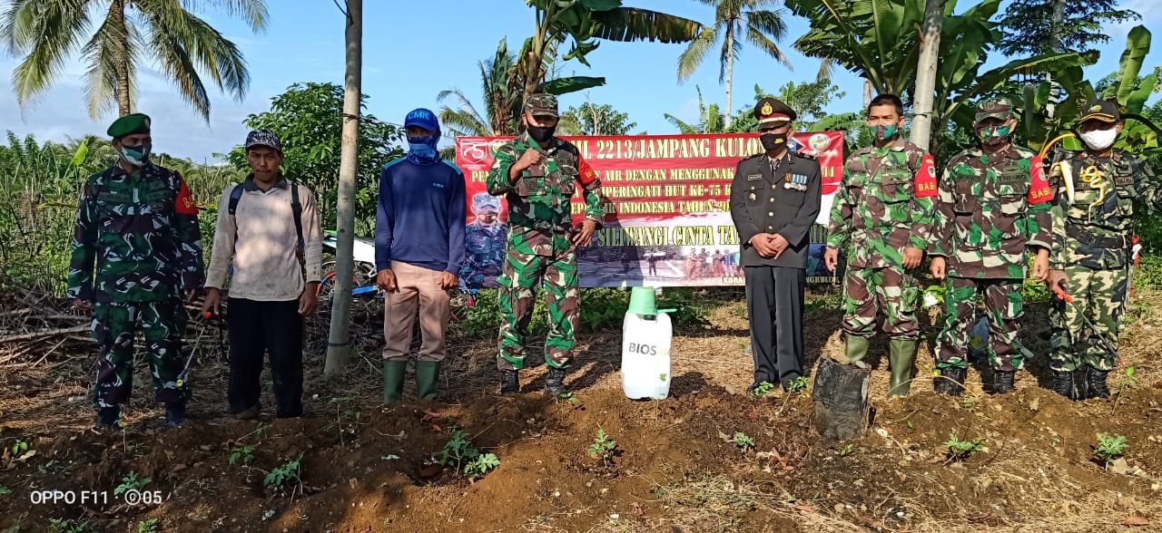Kab.Sukabumi (kilangbara.com)-Dimoment HUT RI ke 75, Koramil 2213 Jampangkulon Kabupaten Sukabumi, bantu sejumlah petani yang berada di Jampangkulon.Dengan mengunakan bios 44 guna untuk meningkatkan sejumlah produksi.