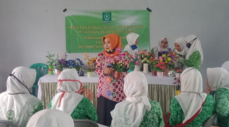 Kab.Tasik (kilangbara.com)-Sejumlah ibu-ibu anggota PAC Fatayat Kecamatan Karangnunggal, Kabupaten Tasikmalaya.Kini mendapatkan ilmu berupa dengan cara merangkai bermacam-macam bunga yang indah.