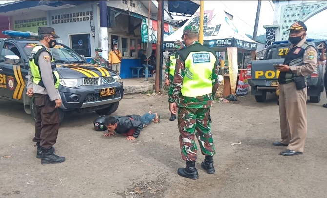 para pelanggar itu, 13 orang diberikan teguran dan 11 orang diberi sanksi fisik.Operasi ini merupakan pelaksanaan, Pembatasan Kegiatan Masyarakat (PPKM) untuk pengendalian penyebaran Covid-19, “ujar Kapolsek Bantarkalong Iptu Sunarto S.Sos.