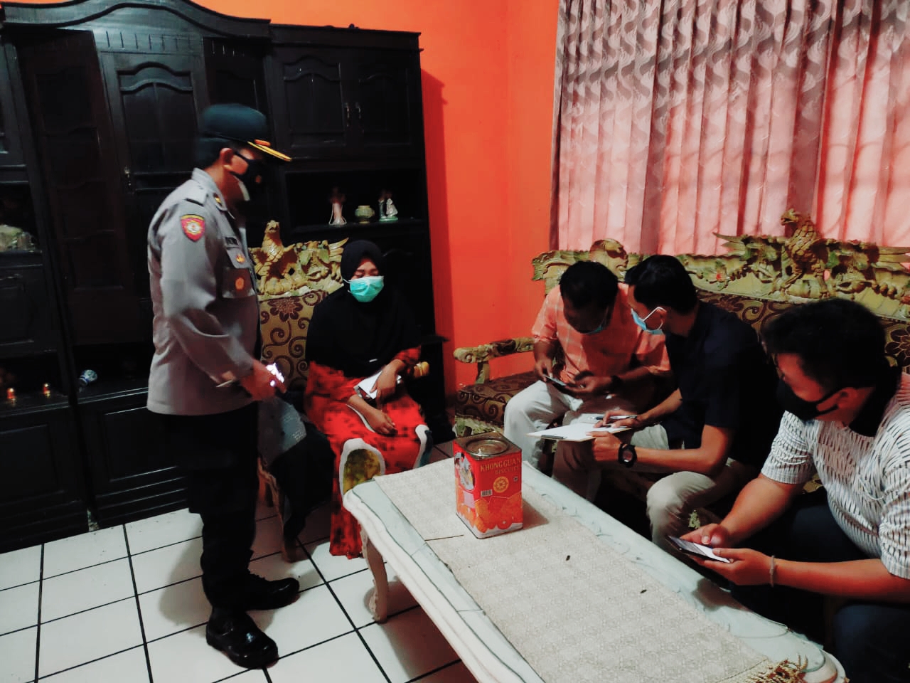 mengecek ke dalam rumah korban, melalui pintu belakang.