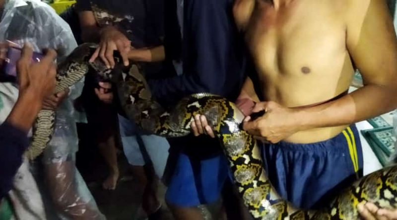 Kaget!Saat Banjir, Ular Sanca 4 Meter Keluar Dari Selokan, Lalu Ditangkap Warga