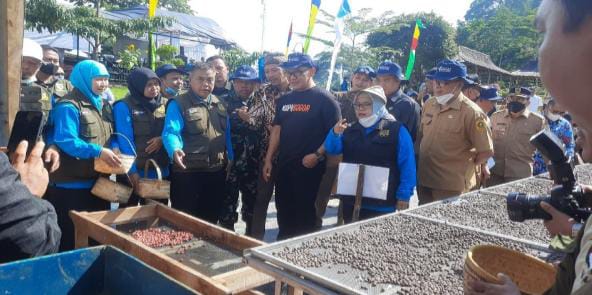Kab.Bogor (kilangbara.com)-Memasuki tatanan new normal pasca pandemi Covid-19. Saat ini, kehidupan sosial ekonomi masyarakat mulai bangkit kembali. Hal itu, ditandai dengan semakin meningkatnya aktivitas produksi usaha tani. Perlu diketahui, Kabupaten Bogor merupakan penghasil kopi robusta terbesar di Provinsi Jawa Barat. Dengan menyumbang sekitar 40 persen dari total produksi kopi robusta di Jawa Barat. Adapun, dengan jumlah petani kopi mencapai 28.935 orang (data statistik Dinas Perkebunan Provinsi Jawa Barat). Sedangkan, sentra produksi kopi robusta di Kabupaten Bogor meliputi, Kecamatan Sukamakmur, Tanjungsari, Cariu, Tenjolaya, Babakan Madang, Cigudeg, Jasinga, Pamijahan, dan Megamendung. Kualitas dan karakteristik kopi robusta Kabupaten Bogor. Telah, mendapatkan pengakuan dari Direktorat Jenderal Kekayaan Intelektual Kementerian Hukum dan HAM Republik Indonesia berupa Indikasi Geografis (IG) Kopi Robusta Java Bogor.