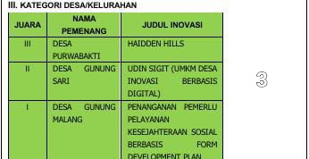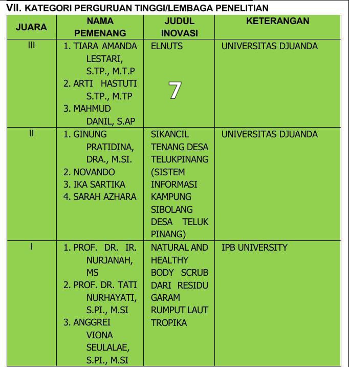 Ajat memberi contoh sukses inovator lokal yang telah mencapai tingkat internasional, seperti Hendrik yang berhasil mengembangkan inovasi dalam penjualan madu, sebagai inspirasi bagi generasi muda untuk mengejar inovasi mereka. Berikut Daftar Pemenang GID dan Duta Inovasi Desa Tahun 2023.(Daus)