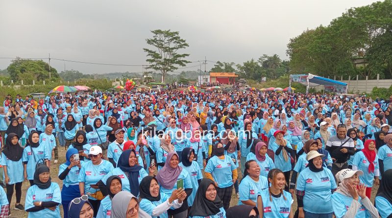 Ribuan emak-emak pun, gercep mengikuti gerakan Cucu Cahyati. Dengan, diiringi lagu Andi Ibo yang berjudul “Viman Walikota”. Seraya, disambut antusias oleh ribuan peserta senam itu. Termasuk, Ketua DPD Gerindra Jawa Barat, H Amin bersama istri, Hj Tine yang berada diatas panggung mengikuti senam tersebut.