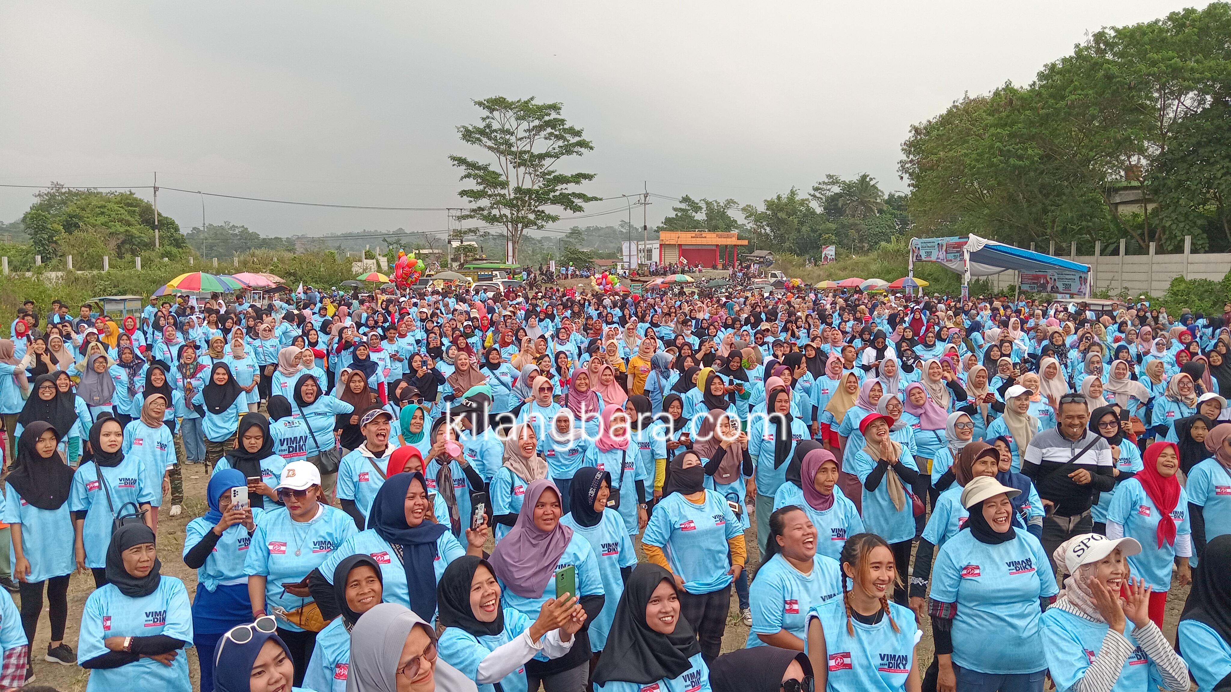 “Semangat semuanya, mana pendukung Viman-Diky Chandra?ayo ibu-ibu, kita senam biar badan sehat. Ikuti ya, gerakan saya dan