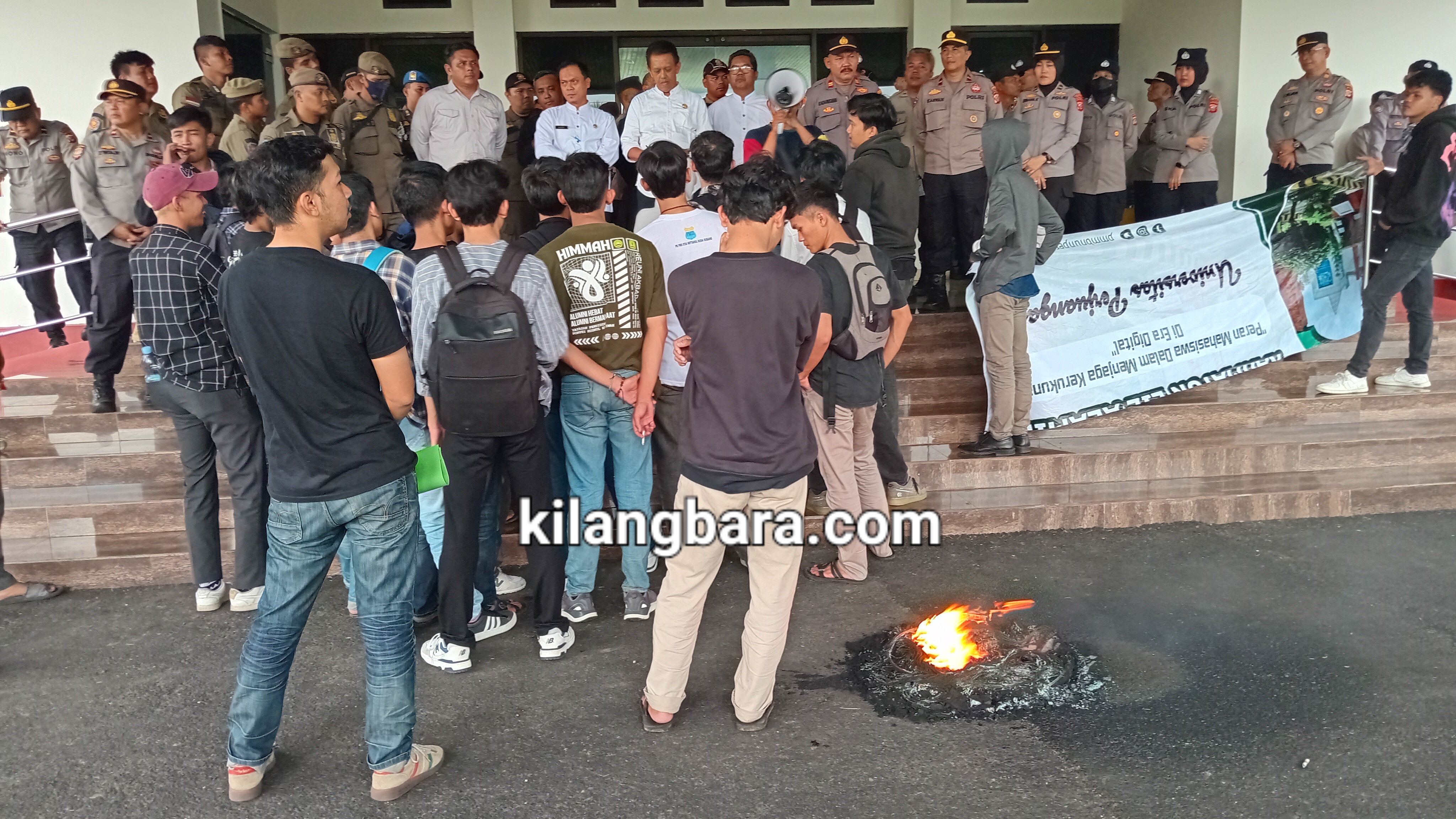 Ilham menjelaskan, pihaknya sudah mengundang Kadis PUTR, Kepala Bapelitbangda dan Kepala Inspektorat. Namun yang datang itu, hanya utusannya dengan didampingi oleh Asda 2. Sehingga sebagai bentuk kecewa, aksi massa itu diwarnai dengan membakar ban. Hingga, asap pun mengepul dikantor Walikota Tasikmalaya.