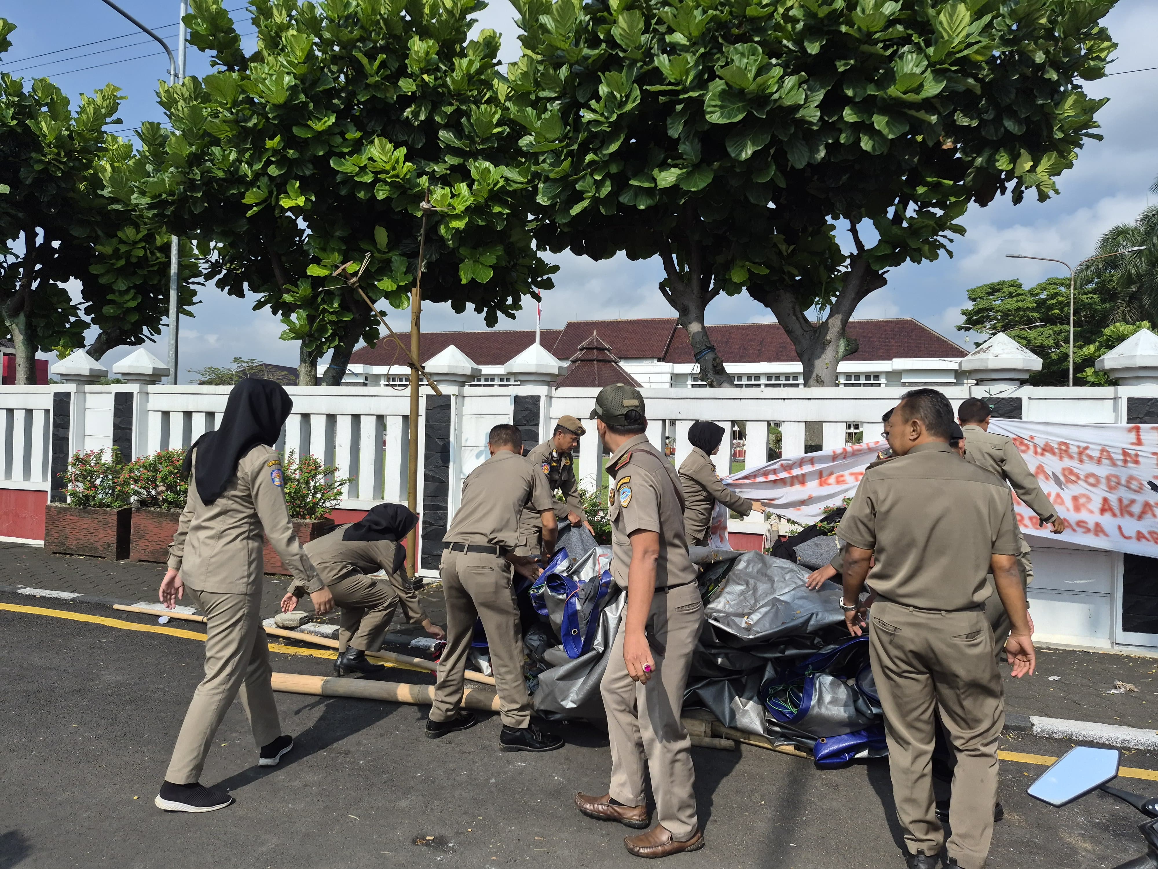 Pihaknya, memberikan ruang waktu yang cukup luas bagi massa aksi untuk menyampaikan aspirasinya secara mandiri. Namun, setelah melewati kurun waktu dua minggu, aktivitas stasioner itu terpantau telah berubah menjadi pemukiman non-permanen. Hingga, mengganggu fungsi utama kantor pemerintah sebagai objek vital daerah.